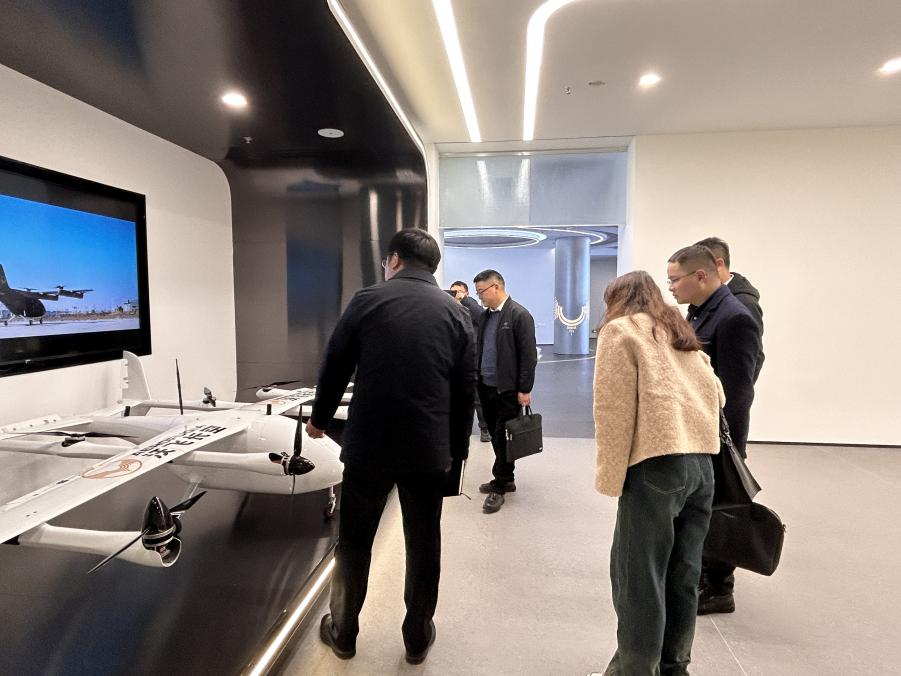 在沃飛長空新落成的企業(yè)展廳,調(diào)研組深度體驗了智能飛行器、無人機(jī)系統(tǒng)等前沿科技成果,系統(tǒng)了解低空飛行領(lǐng)域從技術(shù)研發(fā)到商業(yè)應(yīng)用的全鏈條創(chuàng)新實踐。沃飛長空副總裁兼首席公共關(guān)系官肖前志重點介紹了企業(yè)在eVTOL(電動垂直起降飛行器)、城市空中交通等領(lǐng)域的突破性進(jìn)展。